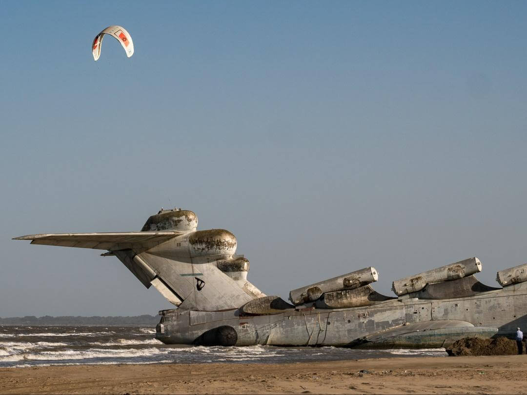 Этот огромный ракетоносец был построен в СССР в 1986 году для поражения надводных кораблей с водоизмещением до 20 000 тонн и достигал скорости 550 км/ч. Но его история продлилась недолго — уже в 1990 году проект был приостановлен из-за слишком высоких расходов и распада СССР. Экраноплан был списан и простоял на военной базе в Каспийске до 2020 года.