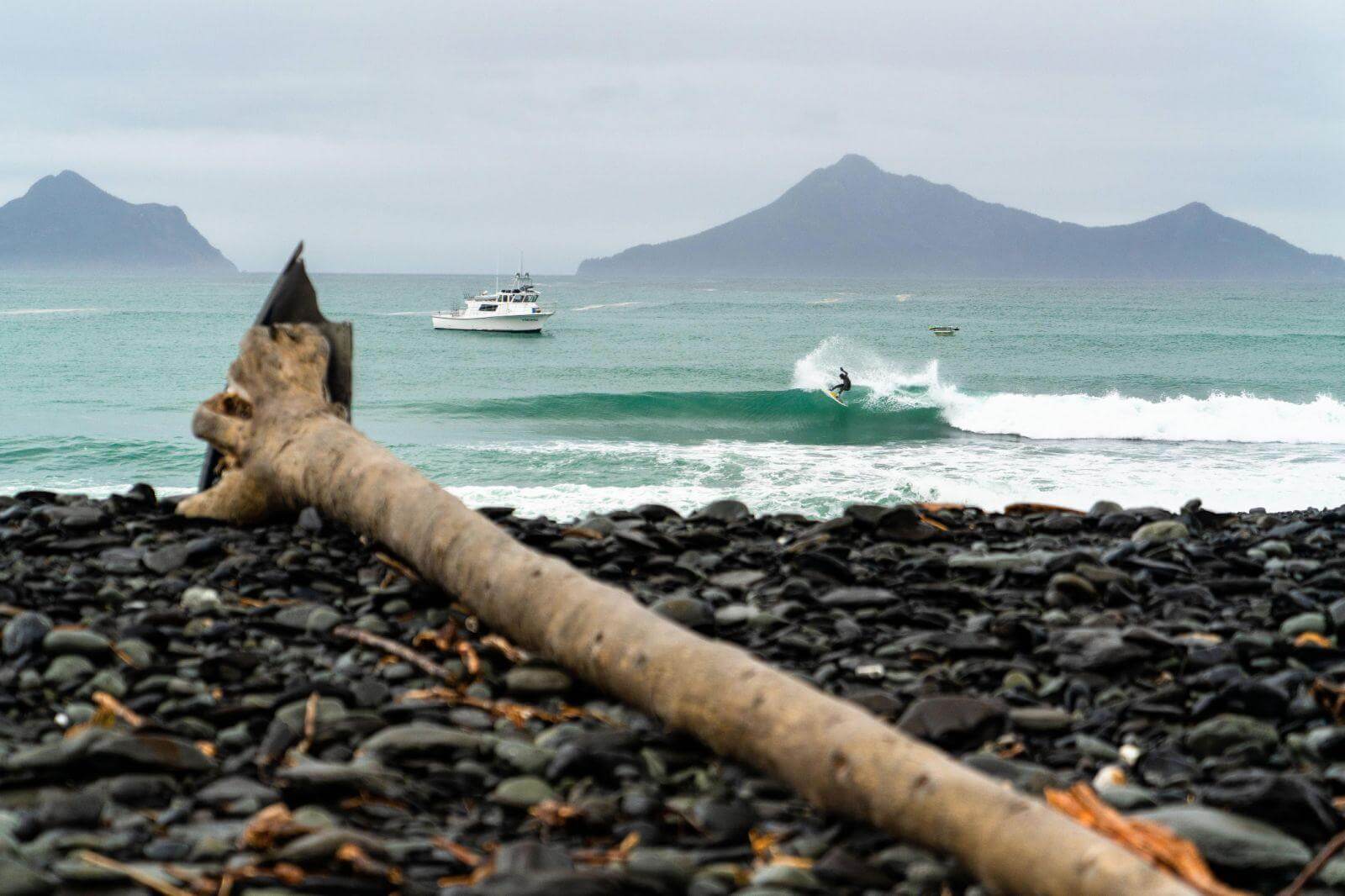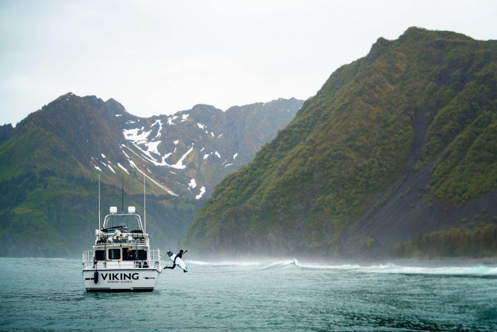 “Планировать, готовиться, слушать прогноз погоды, а потом повторять этот процесс. Честно говоря, таким был ритм жизни на лодке на Аляске. Но всегда есть новый залив для исследования, риф-брейк, бич-брейк или крутое место на берегу. Поразительно – сколько там было вариантов. Каждый день было ощущение, что мы играем в шахматы, пытаясь перехитрить шторм и сконнектиться со свеллами.”