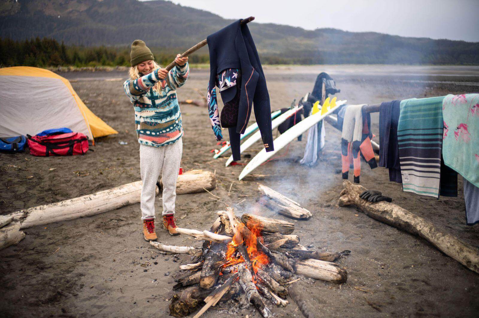 Я возьму идеально сухой гидрик, пожалуйста! Любая девушка, которая сможет вытерпеть толпу серферов на лодке в течение 10 дней сразу же заслуживает моё уважение. Бекка улыбалась всё время, несмотря на вонючие каюты или ледяную воду. Всегда круто видеть кого-то с таким желанием прочувствовать холодную воду в новом месте – таком, как Аляска. К концу трипа она стала настоящим локалом! И да, я не рекомендую так делать – только если ты уже не можешь дождаться, чтобы надеть теплый гидрокостюм, а солнца просто нет. Я бы сделал что угодно, чтобы высушить свой мокрый гидрик.