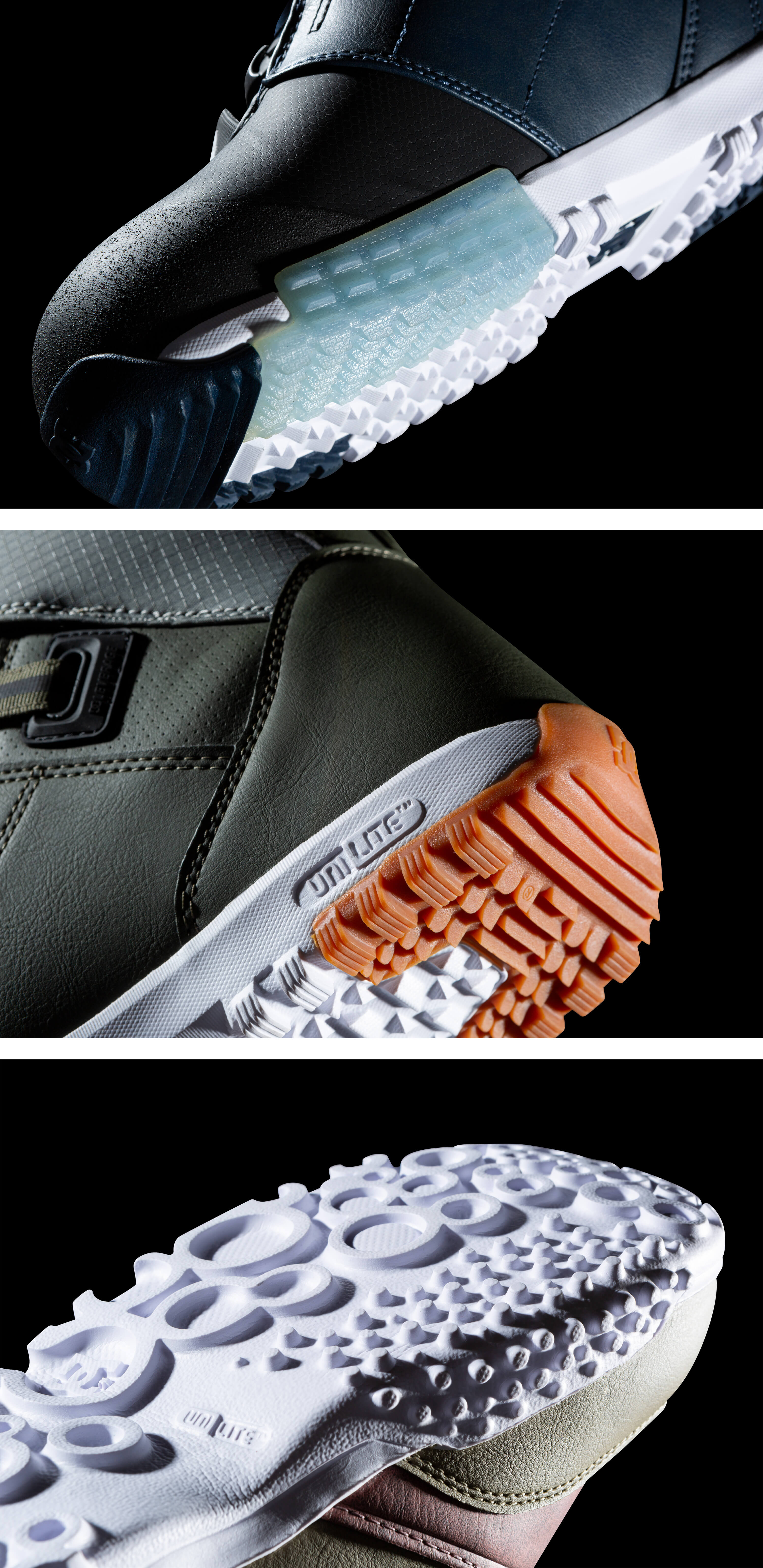 Подошва ботинка главным образом амортизирует вибрации от неровностей склона и приземлений. Цепкость протектора и способность не скользить также важны на склоне, как и при обычной ходьбе. Мягкая подошва с дополнительными амортизирующими вставками из различных материалов (воздушные капсулы, гранулы, гели) чаще всего применяется в ботинках для фристайла. Более жесткие подошвы с агрессивным рисунком протектора — в ботинках для больших гор и фрирайда.