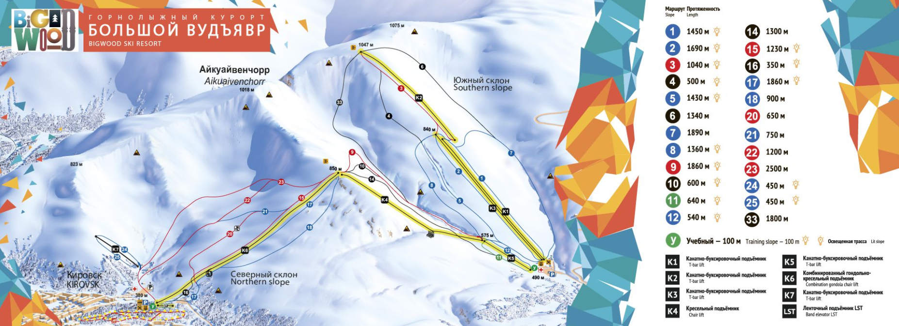 Курорт находится на южном и северном склонах горы Айкуайвенчорр. Это место славится своей необычной красотой. Лишенные всякой растительности горы дают большой простор для любителей катания вне трассы. Длинный сезон позволяет кататься до мая, используя преимущества продолжительного светового дня. Зимой здесь можно наслаждаться красотой северного сияния.