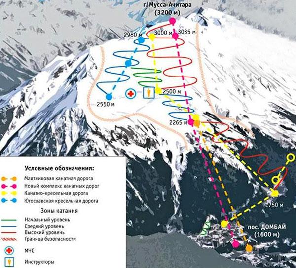 На курорте есть трассы для всех уровней катания, общей протяженностью 30 км. Так же есть зоны для фрирайда.