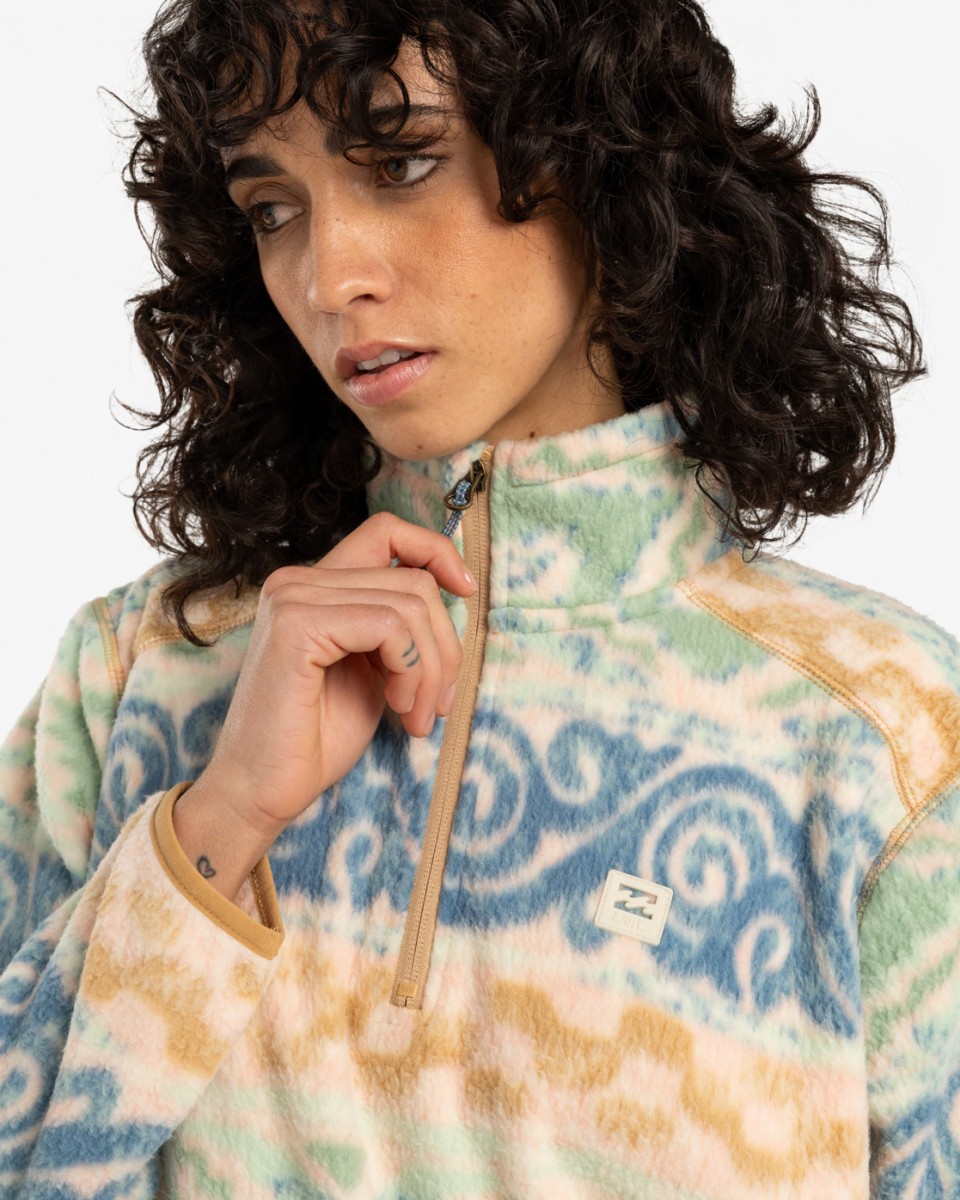 - всепогодной базой, которая сочетает в себе функциональный походный дизайн, яркую цветовую палитру и современный крой. Сшитая из мягких переработанных волокон, эта уютная и производительная флиска поможет остаться в тепле и сухости благодаря водоотталкивающему покрытию, карманами на молнии и эластичной окантовкой.