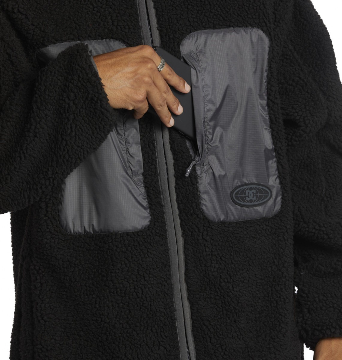 - Контрастные накладные карманы с нейлоновой молнией на груди