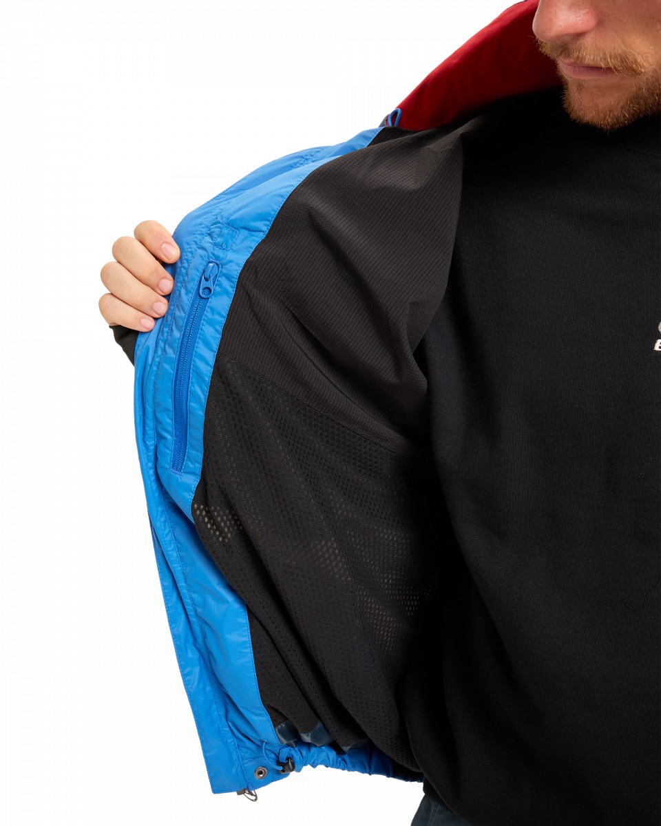 - Капюшон со светоотражающей отделкой можно надевать поверх шлема, а также компактно свернуть и убрать в собственный воротник